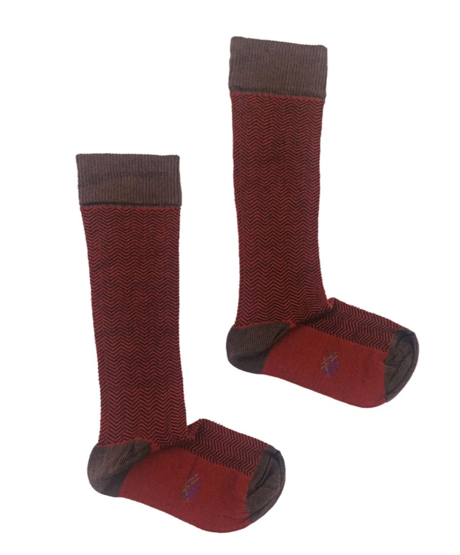 CALCETÍN ESPIGA TEJA Y MARRÓN