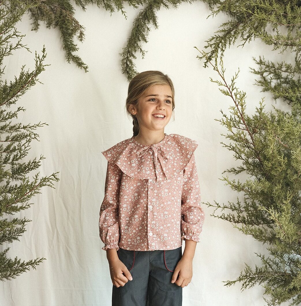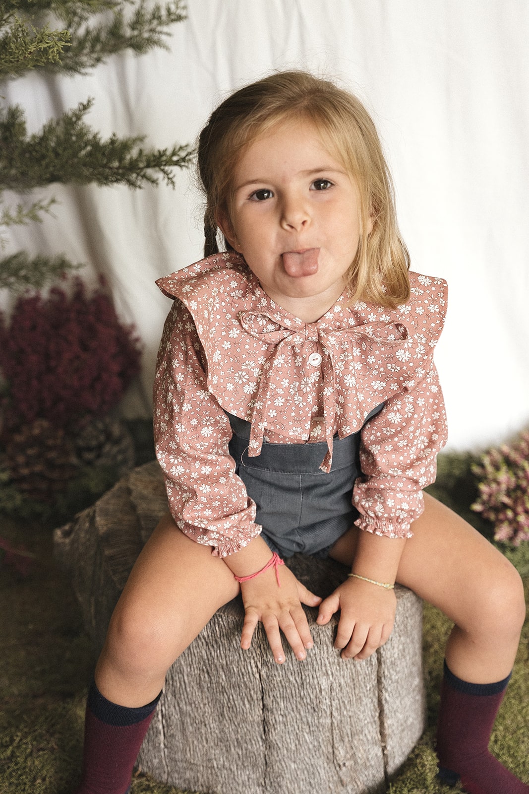 CAMISA CON LAZADA HECHA EN TEJIDO DE ALGODÓN ESTAMPADO CON FONDO ROSA.