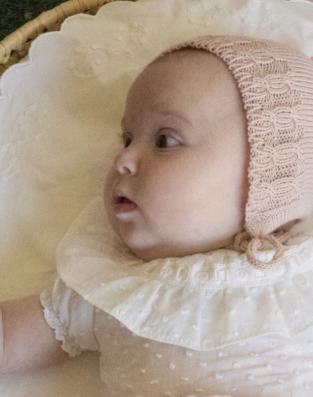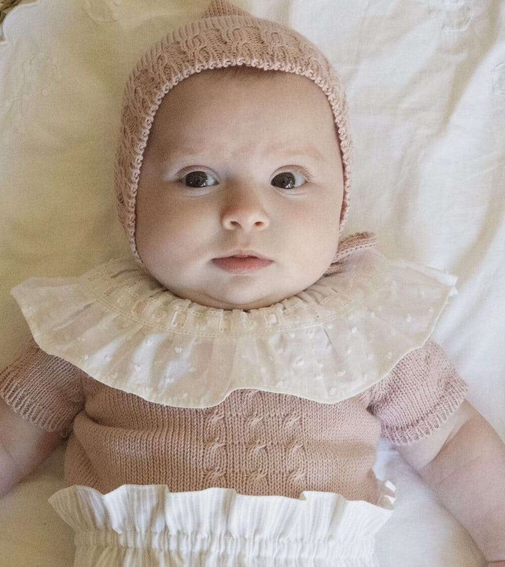Cuello hecho de plumeti algodón y pasacinta. La talla es para bebes de 1 mes a 6m cambiando el botón.