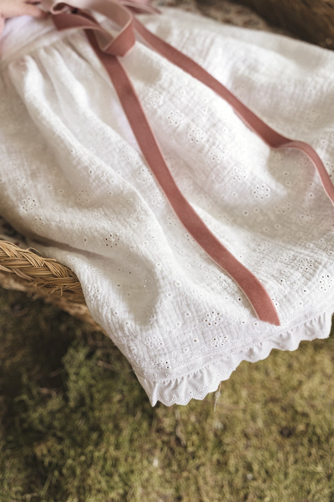 FALDÓN HECHO CON TEJIDO BORDADO DE ALGODÓN. EL LAZO DE LA CINTURA SE PUEDE PONER ROSA O AZUL. DÉJANOS EN OBSERVACIONES EN QUE COLOR LO QUIERES.