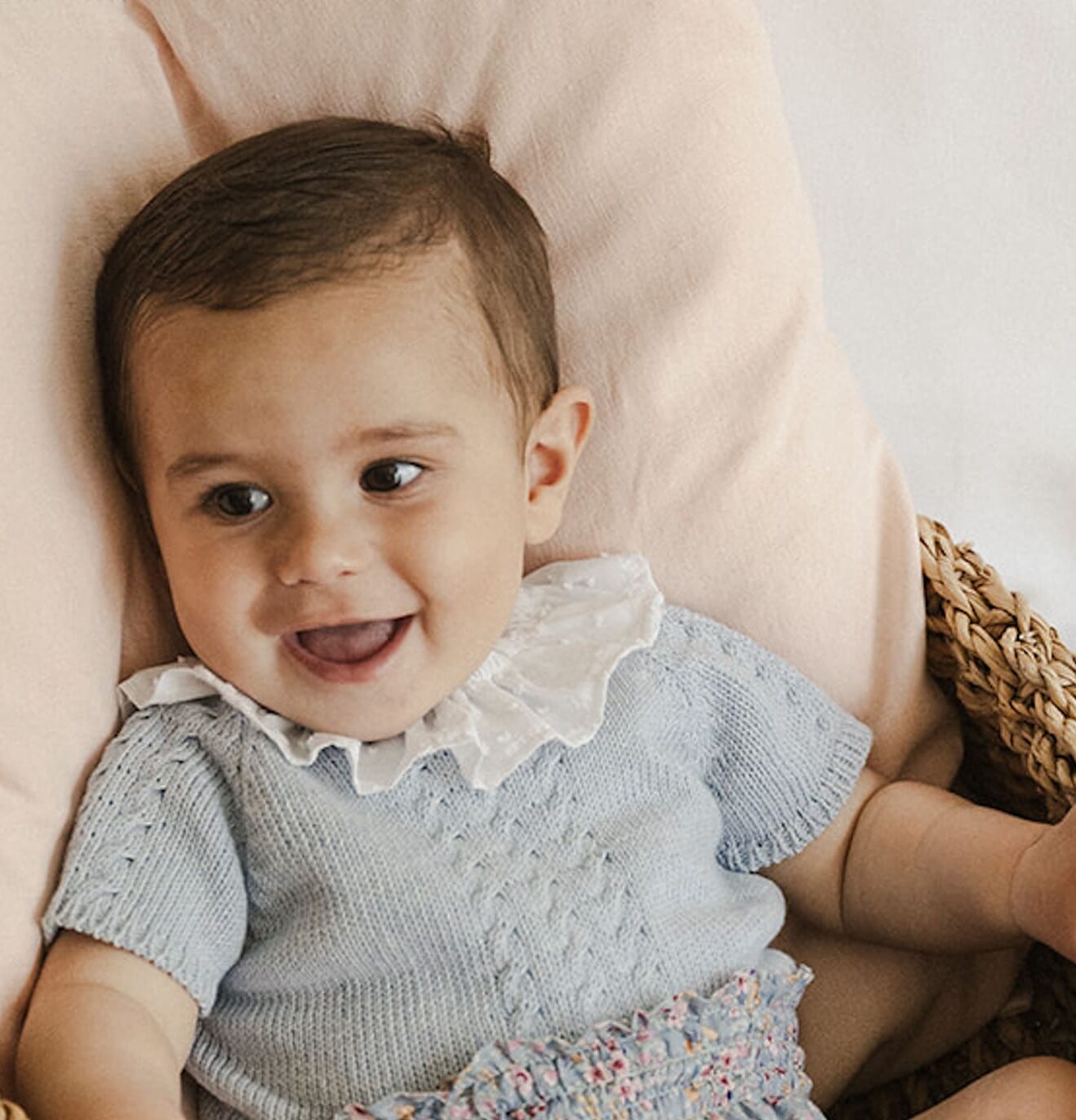 jersey manga corta con ochos en la parte central, hecho con algodón. si no queda tu talla, escríbenos para encargarlo.el modelo, mide 70cm, pesa 8kg y lleva la talla 3m.