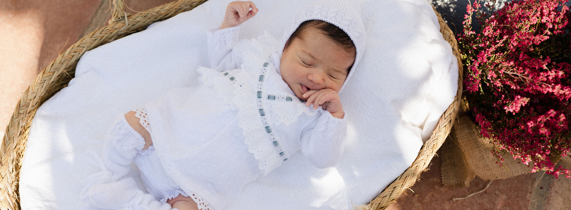 Jesusito de plumeti con tira bordada y lazo de color celeste. Incluye cubrepañal.