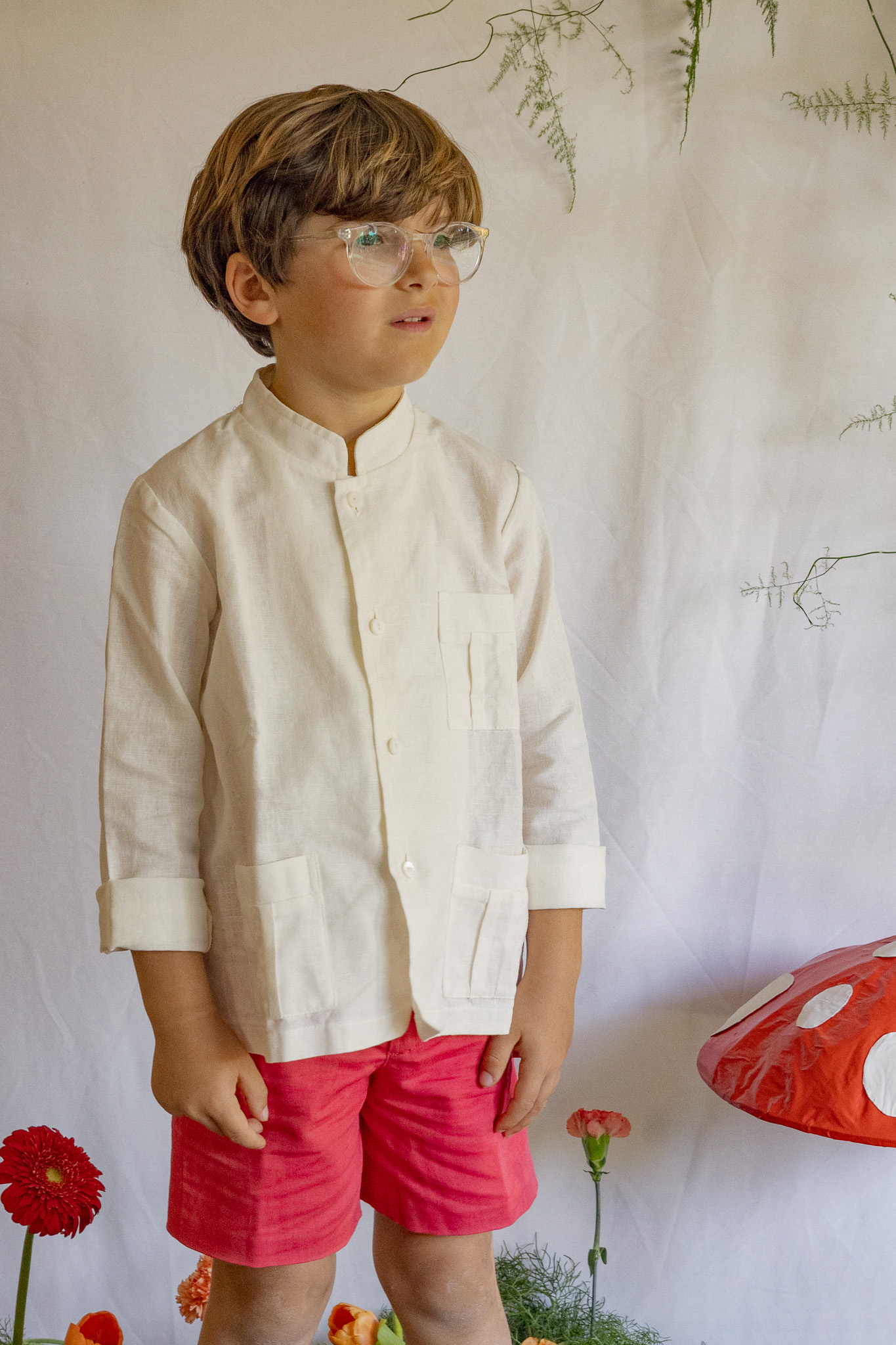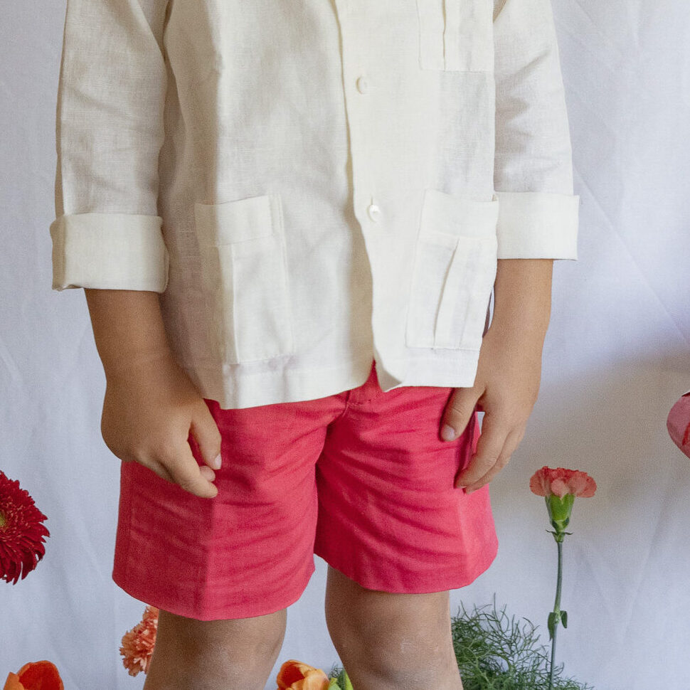 Pantalón corto hecho en lino y con cintura ajustable con goma de ojal.