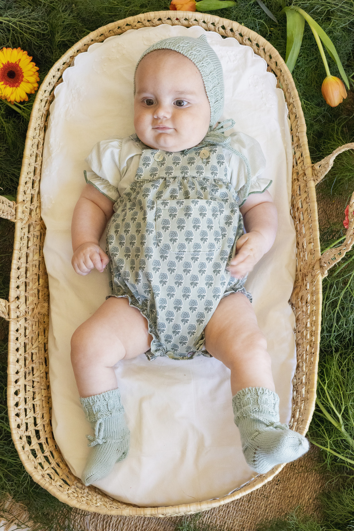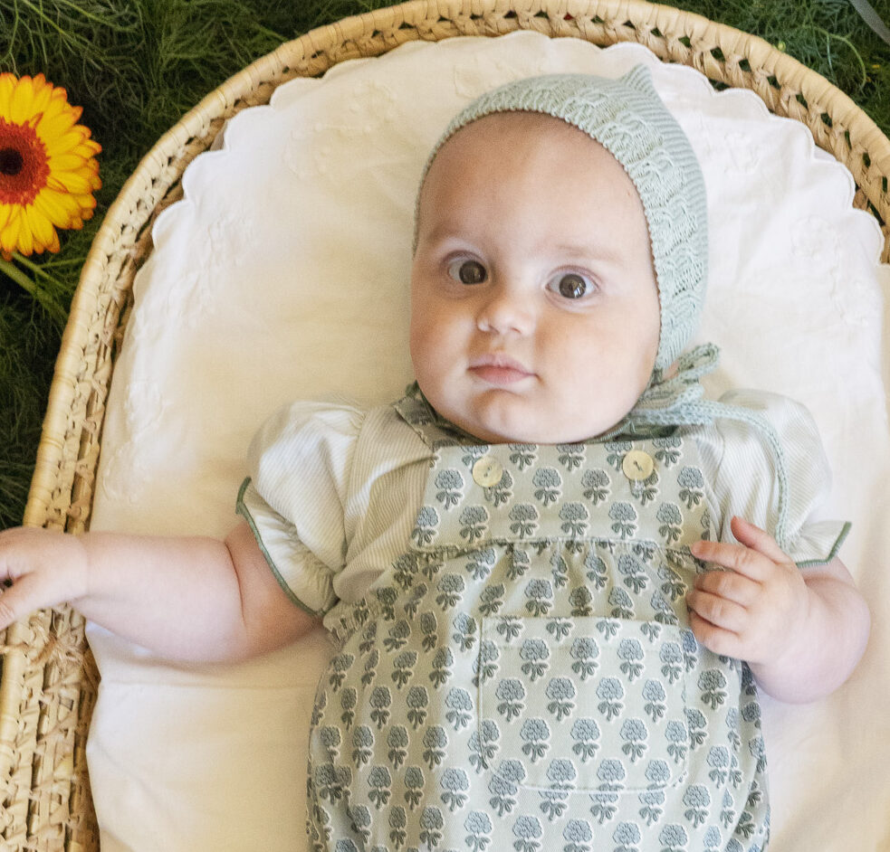Pelele hecho con tejido atemporal estampado 100% algodón.