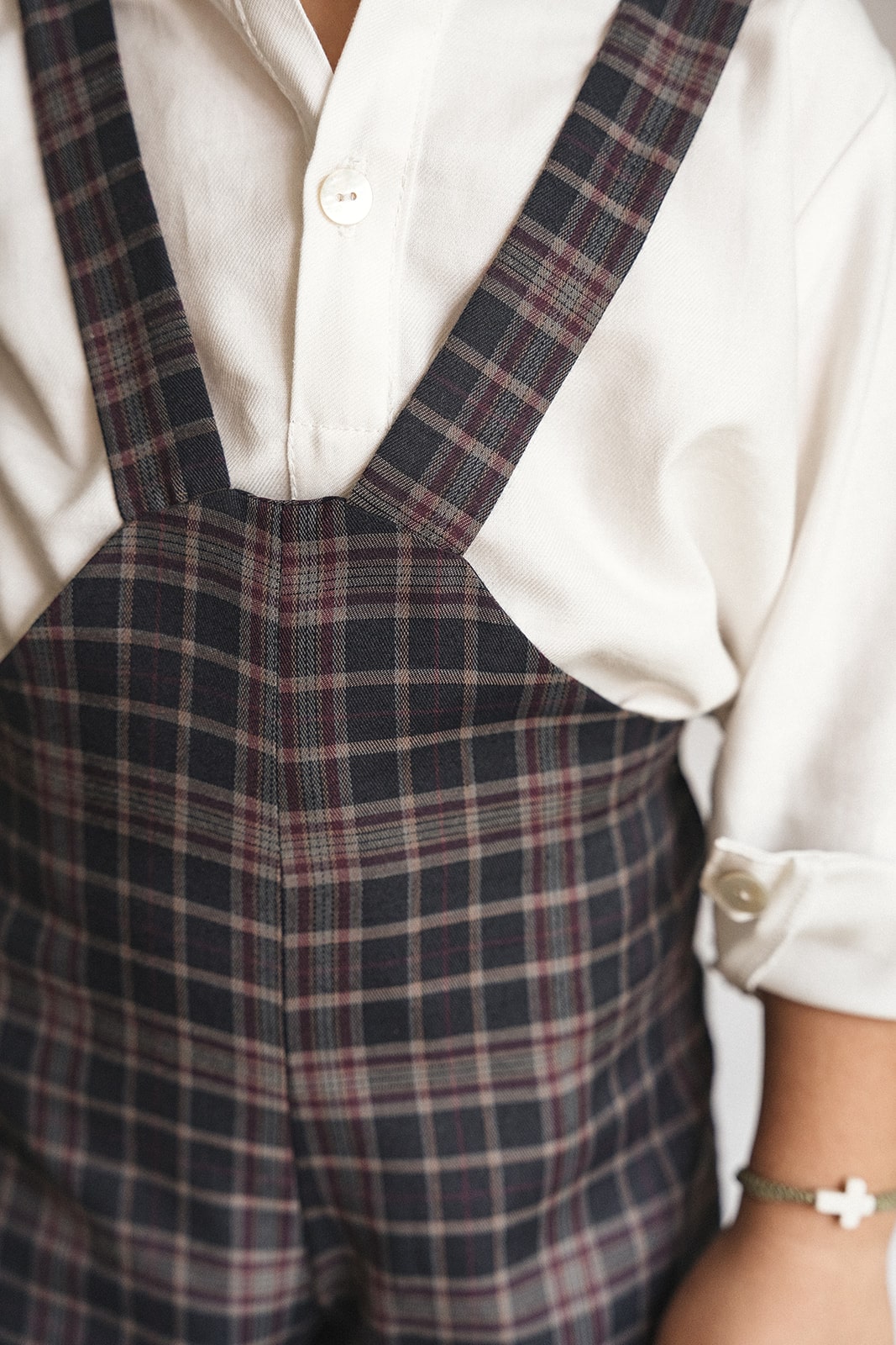 PANTALON CON TIRANTES HECHO EN TEJIDO TARTAN.