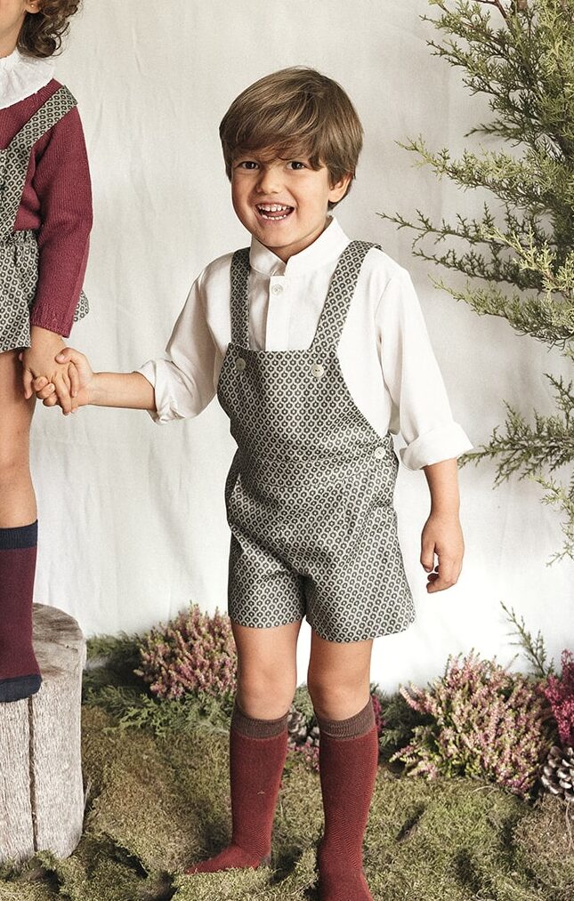 PETO HECHO EN TEJIDO DE ALGODÓN CON ESTAMPADO GEOMÉTRICO EN TONOS VERDE Y ANTRACITA CON CINTURA REGULABLE.