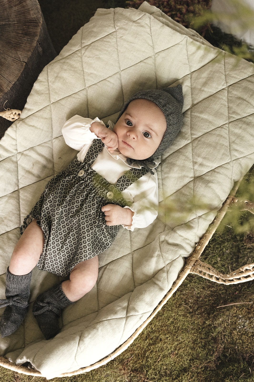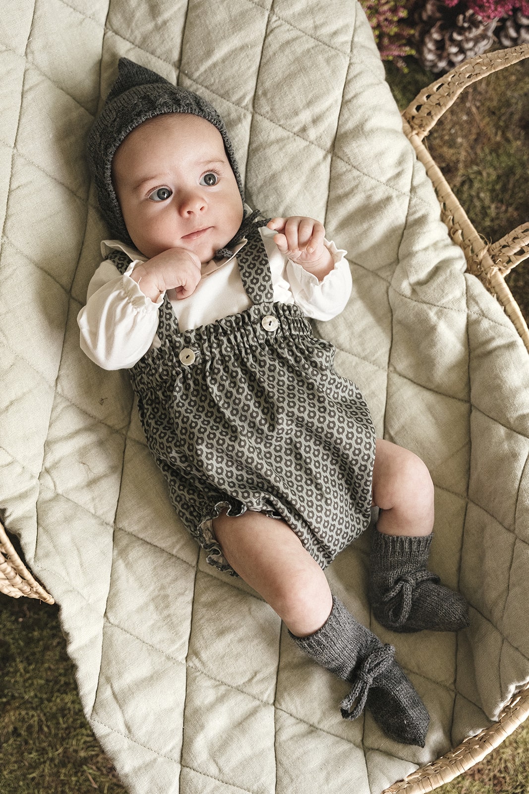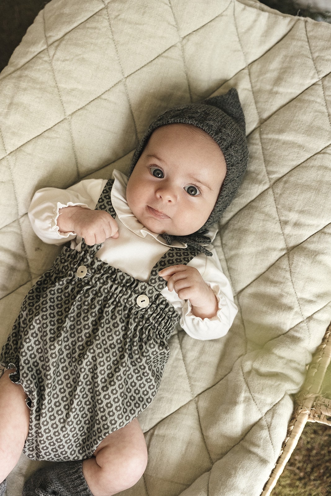 PELELE HECHO EN TEJIDO DE ALGODÓN CON ESTAMPADO GEOMÉTRICO EN TONOS VERDE Y ANTRACITA. P(0M-4M) M(4M-7M) G(7M-12M).