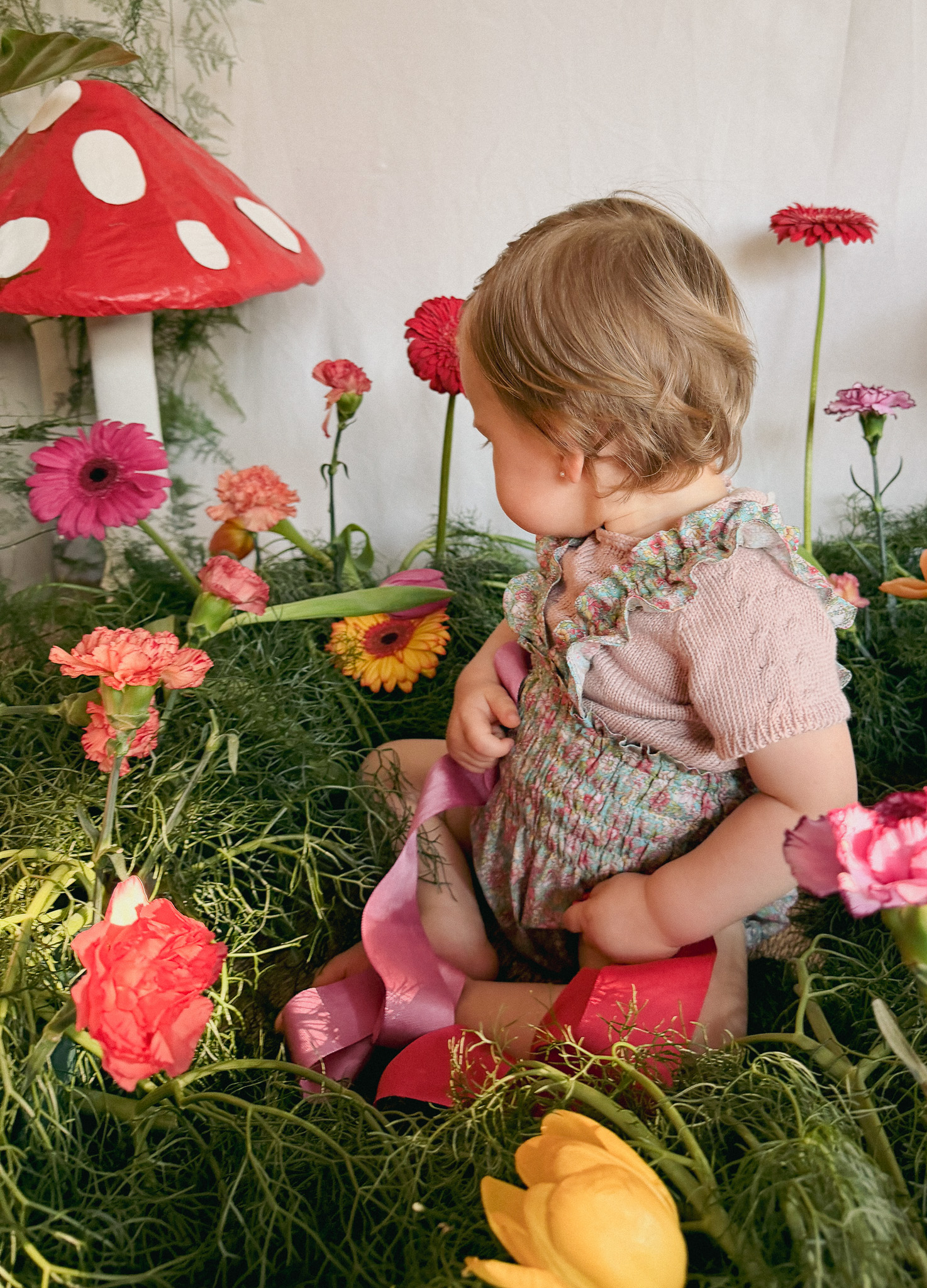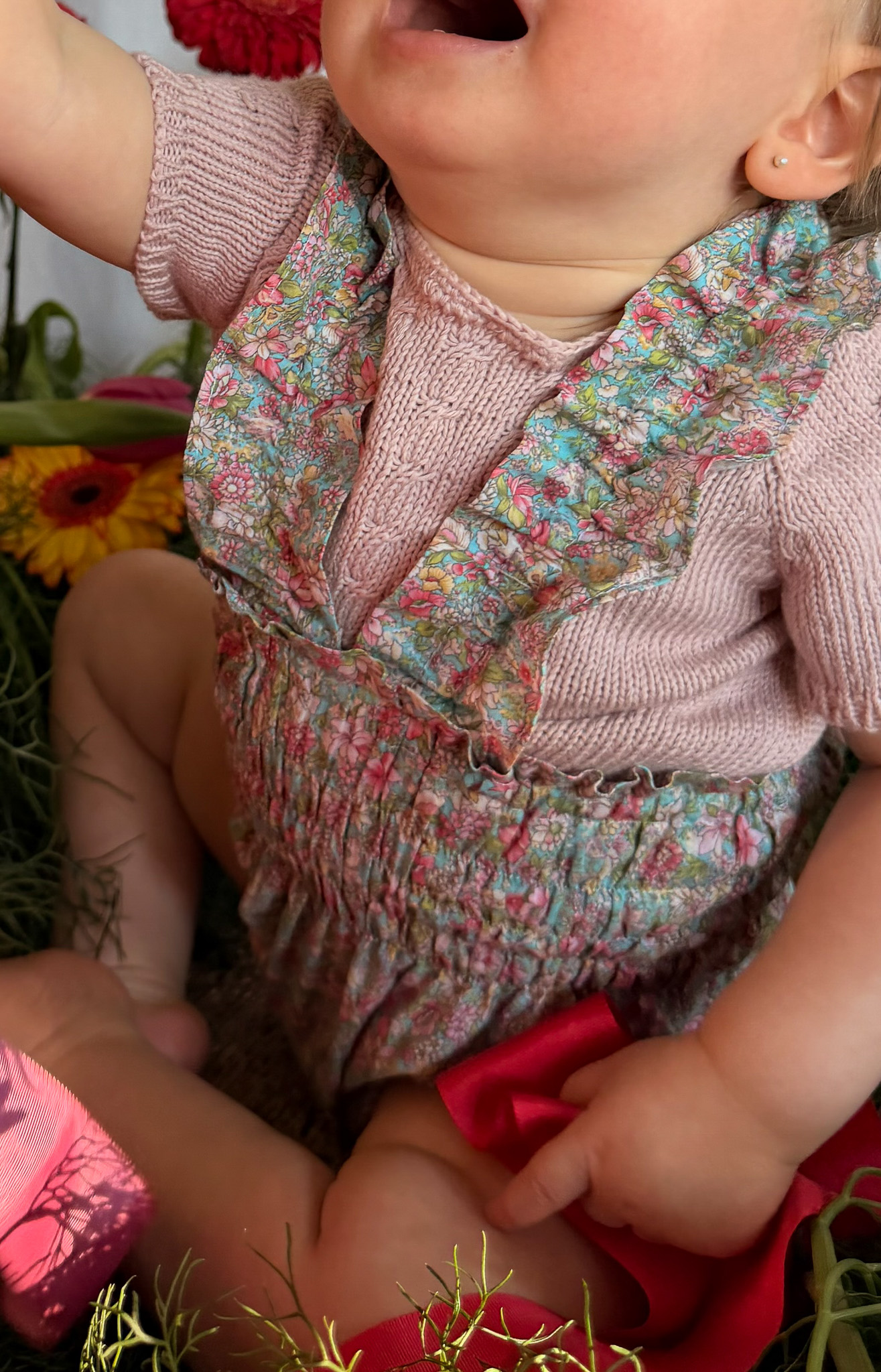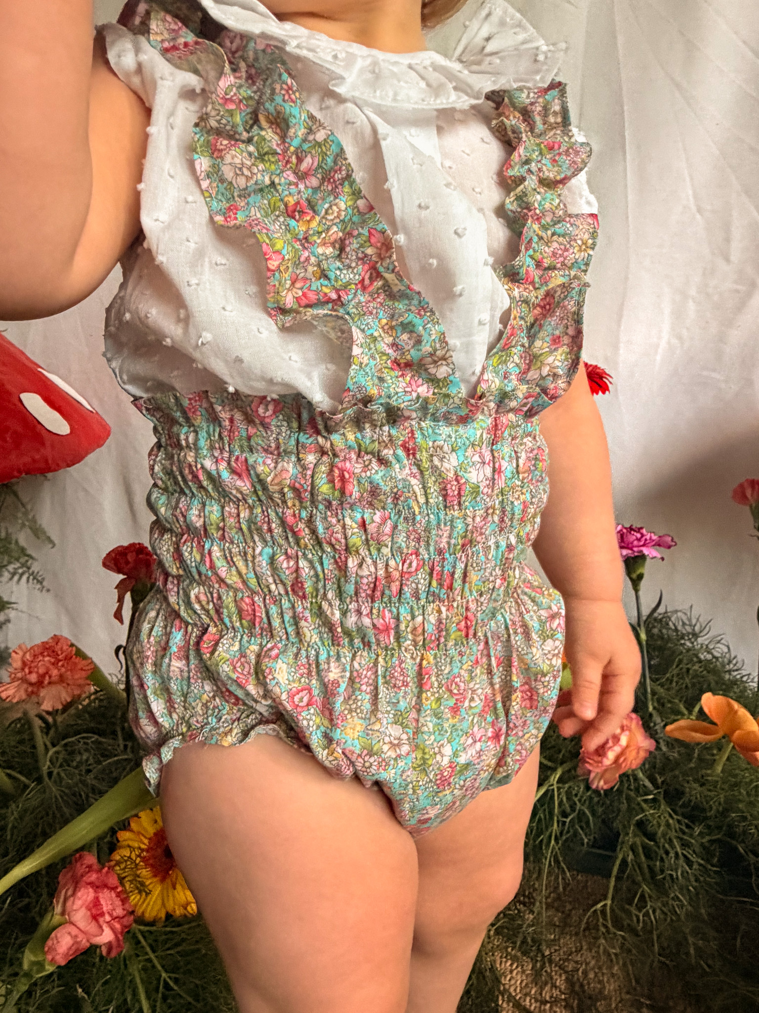 RANITA BAÑADOR engomadA con estampado floreAL. 100% algodón. P(2m hasta 6m) M(6m-10m) G(10m-18m).